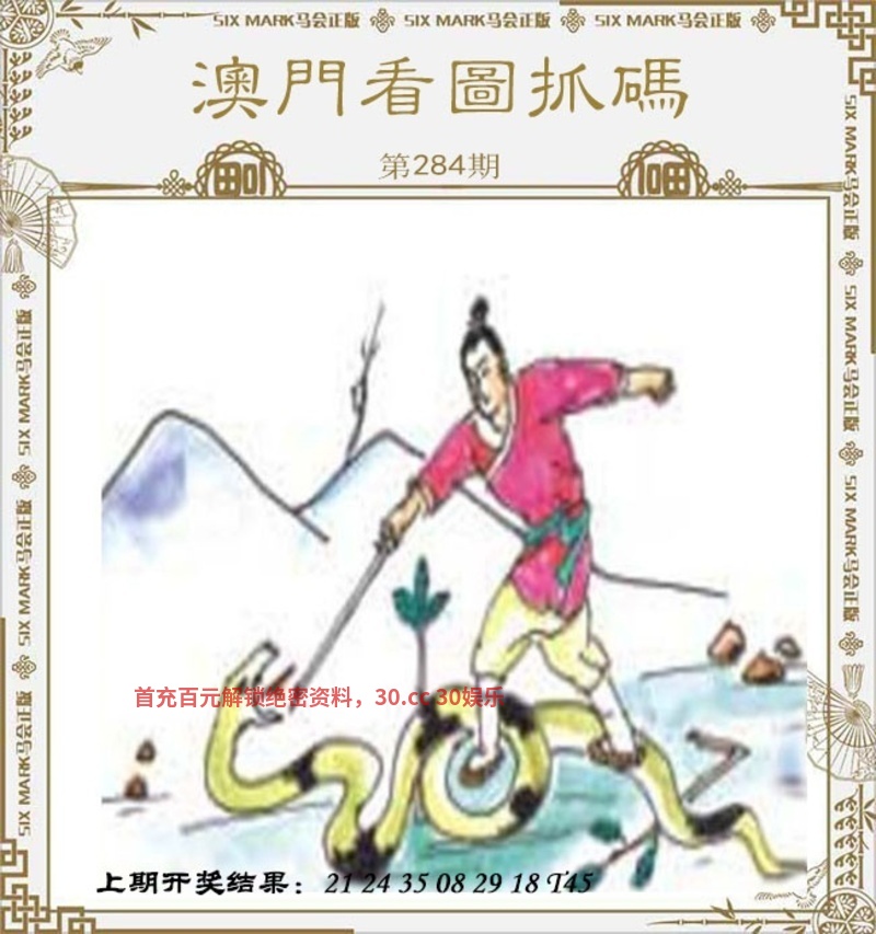 284期:【广西团队协手破解抓码图】【开發00】 破解图文:图中有一个男人正在与一条蛇搏斗,手上拿着一把剑对着蟒蛇来刺。 综合九肖:蛇兔马龙猪猴狗羊鼠 综合七肖:蛇兔马龙猪猴狗 综合五肖:蛇兔马龙猪 综合三肖:蛇兔马 综合一肖:蛇 综合十码:37.49.39.12.14.19.22.32.23.06 |